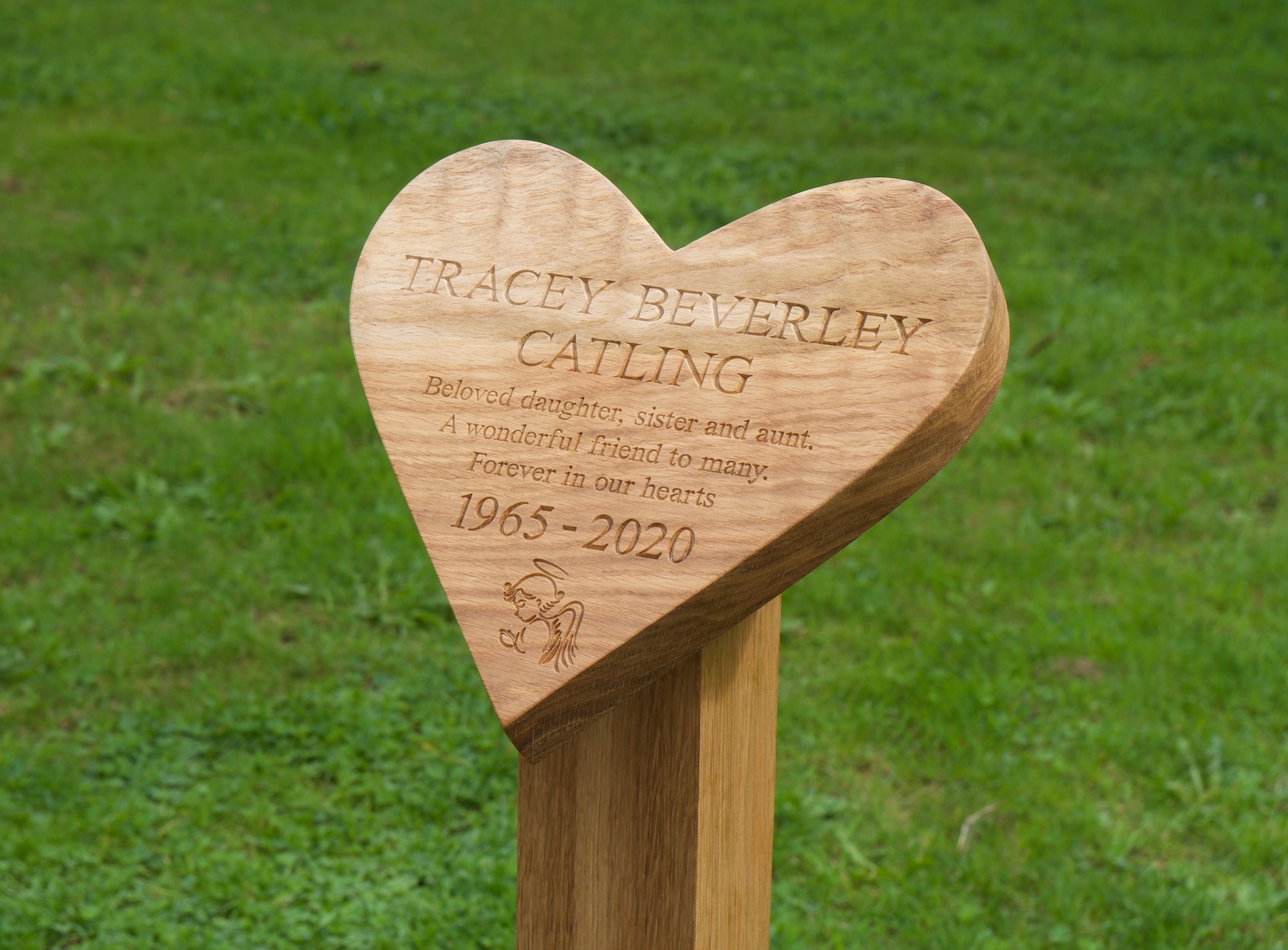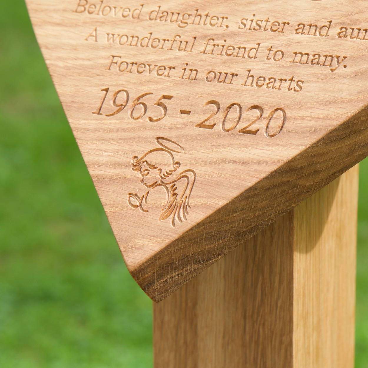 These stunning handcrafted wooden grave markers are made to order right here in our Surrey Hills workshop with considerable care and attention to detail. If you are looking for an alternative to the common headstone, or you have chosen a green burial, we will produce the finest English Oak burial marker for you. These quality handcrafted memorial markers are breathtaking. Completely bespoke with you choice of engraved lettering and carved motifs if required. MakeMeSomethingSpecial memorial plaques are simply stunning.