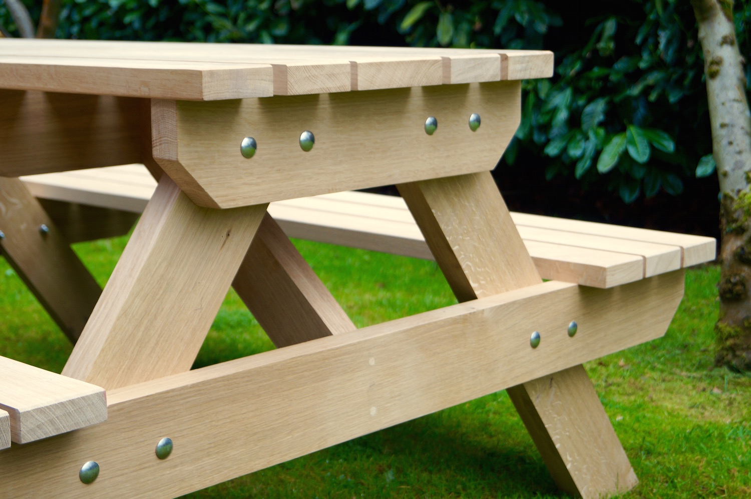 This is our new handcrafted wooden picnic benches for your garden. Put together completely by hand in our Surrey Hills workshop using true English oak from our local sawmill. This total unbelievably stunning picnic table is made to the highest of standards and by far the most high-quality picnic table on the market.